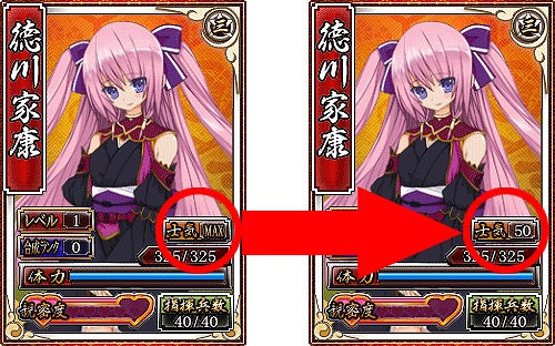 10月10日(水)より、戦闘システムに新しく「士気」が導入されます。この機能は、各武将のステータス能力に追加され、戦闘を行うごとに数値が減少し、それに合わせて、部隊の攻撃力や防御力が下がってしまいます。そのため、同じ武将で戦い続けると、士気低下により思わぬダメージを受けることも!