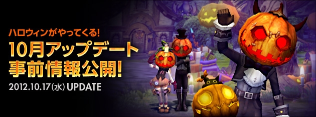 アップデートにてそれぞれの町がハロウィン一色となります。2012年限定のハロウィンの町並みをご堪能ください。さらに!【イベントガイド】アイリーンもハロウィン用の衣装に着替えてお待ちしております。お楽しみに!