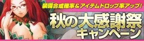 ベクターは、「ドラゴンクルセイド2」において、本日10月10日より、備合成の成功率やアイテムドロップ率がアップする「秋の大感謝祭キャンペーン!」を開催する。