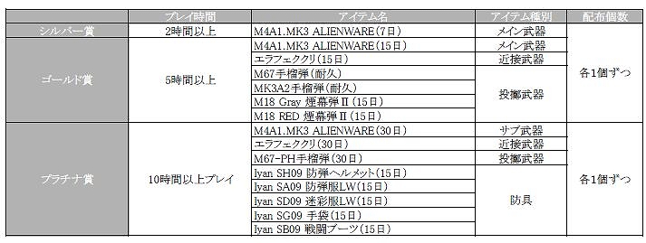 新マップ「RADAR」を一定時間遊ぶと、もれなく全員に「ALIENWARE特別デザイン武器」をはじめとして、お役立ちアイテムを各1個ずつ、遊んだ時間に応じてプレゼントいたします。