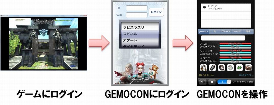 ・「GEMOCON アプリ」を起動し、ゲームと同じアカウントでログインします。
