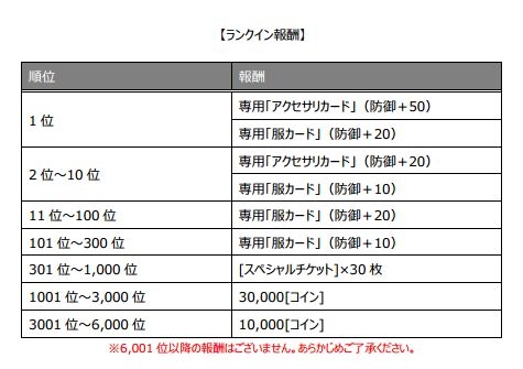 ランクイン報酬