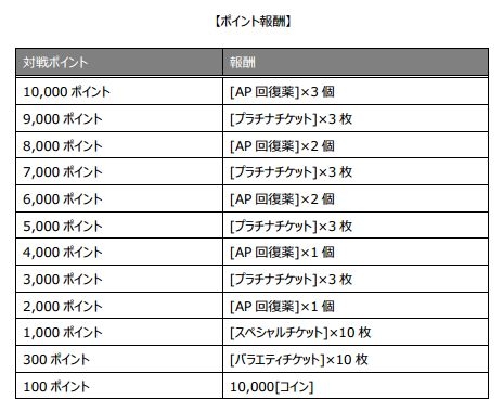 「対戦ポイント」を一定以上、入手したプレイヤー全員を対象とした報酬です。