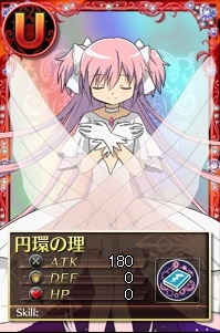 現在存在するレアリティ U のカードはふたつ!そのうちのひとつは「武器カード[オデット]」です!そのレアリティ U に見合う、非常に強力な武器となります!そしてもうひとつのレアリティ U のカードは、「アルティメットまどか」のイラストを使用した「スキルカード[円環の理]」です!すべてを包み込むその姿はまさに最上位レアリティ U にふさわしく、その能力はまさにアルティメット級!