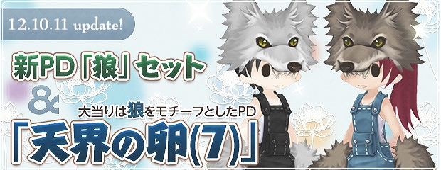大当たりでステータスがUPするペーパードールアイテムが獲得できる「天界の卵」シリーズに第7弾が登場です!今回の大当りは狼をモチーフとしたPDとなっております。なお、30日期限付きのPDも追加されますので、エンジェルモールで試着もしてみてくださいね。