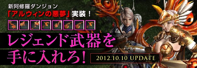 2012年10月10日(水)よりクウェルン要塞内城進入路内に新阿修羅ダンジョン「アルウィンの悪夢」を実装いたしました。