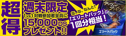 期間中、1vs1対戦を行ったキャラクターに、後日、15,000DSをプレゼントいたします。