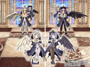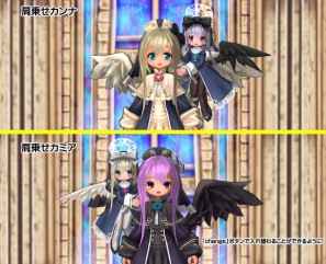 また、カミア・カンナとおそろいの「双天使の翼(白)」や「双天使のローブ(紺)」「双天使のタイツ付きシューズ(紺)」「双天使の帽子(紺)」は、アップタウン「裁縫おばさん」の家にいる「染色娘」に渡すと別の色に染め直したり、別のアイテムと交換することができます。