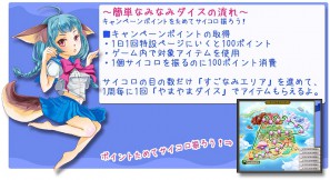 キャンペーン期間中、「キャンペーン対象アイテム」をゲーム内で使用、もしくは、「なみなみダイスキャンペーン」特設ページにログインすると「キャンペーンポイント」がもらえます。
