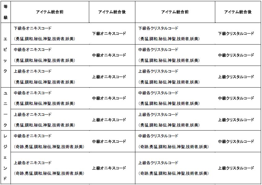 潜在能力とは「潜在能力コード」というアイテムを使用して各種装備に付与される追加能力値のことです。この潜在能力を武器と防具に付与する為に利用するアイテム「クリスタルコード」と「オニキスコード」は、今までクラス毎に分かれておりました。