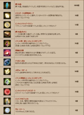 - 特典アイテムは対応した難易度の特典アイテムテーブルの中からランダムで1種を受領することが可能です。