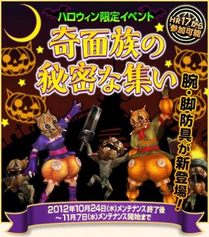 カプコンは、「モンスターハンター フロンティア オンライン」において、本日10月24日より、ハロウィン限定イベント「奇面族の秘密な集い」などを実施し、イベントオリジナル防具を追加する。