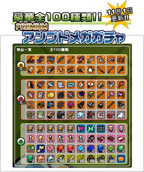 2012年11月1日(木)のメンテナンス終了後からプライムマーケットのアンプドガチャに、新カラーアクセサリを多数実装いたします。
