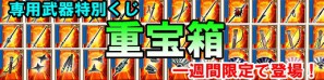 11月7日(水)より、武将や武器が入手できる「くじ」に新コース「重宝箱」が登場!武器カードの中でも最高峰である専用武器が、一気に5枚も手に入る特別くじです。