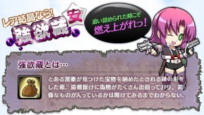 アイテムモールに強欲蔵【保】の販売が終了し、新たに強欲蔵【安】の販売を開始いたしました。お楽しみいっぱいの強欲蔵には様々な結晶が入っており、武器や防具に開いているソケットにセットすると、ご愛用の装備に特別な能力を付与することができます。