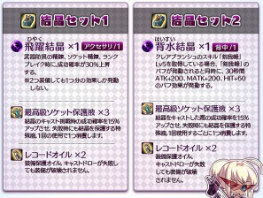 今回の大当たりは、精錬の成功率が上昇する「飛躍結晶」と人気職業「クレアブランシュ」の専用スキルが強化できる「背水結晶」です。どちらの目玉賞品にも「最高級ソケット保護液」がセットで付いてきます。