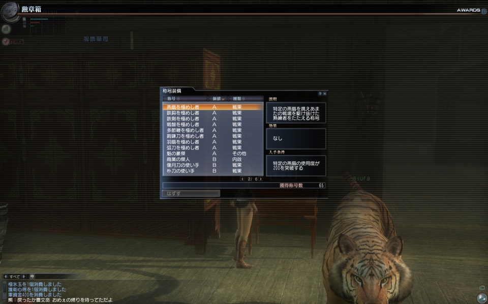 今回実装となる新たな四聖獣服飾「白虎服飾」。今回は白虎がモチーフということで、男性キャラクターは虎のマスクを装備した非常に勇ましい格好となり、女性キャラクターは獣耳を装着した可愛らしい外見となっているぞ。