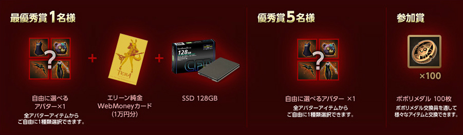 さらに、各部門の最優秀作品の中からグランプリ作品を決定いたします。TERAを愛し、楽しんでいただいている方なら、どなたでもご投稿いただけます。各部門ごとに参加賞もございますので、ぜひご参加ください!