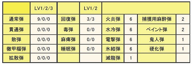 装填数(各ボウガン共通)