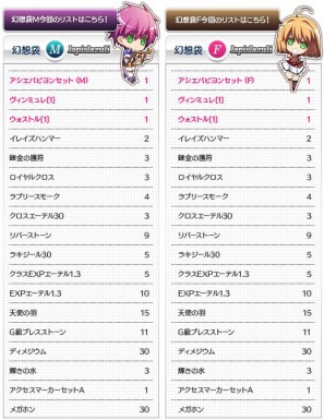 ※幻想袋で入手できるアイテムは、すべて重複して当たることがございます。