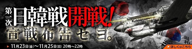 日本と韓国でヒーローズインザスカイをプレイするパイロット達が、お互いに地図上の支配地域を拡大するために戦う大規模空戦です。日本でプレイしているパイロットは、通常の所属陣営やサーバーの分け隔てなく全て「日本軍」、韓国でプレイしているパイロットは全て「韓国軍」となり、全パイロットが全く同じ条件で戦う戦争となります。
