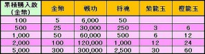 キャンペーン期間中に一定以上の金幣をチャージすると、金幣、戦功、将魂に加え、紫龍玉や橙龍玉などが獲得出来ます!