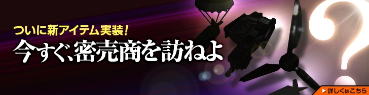 ランダムでアイテムが当たる「密売商」に、この度新アイテムが複数実装されました。