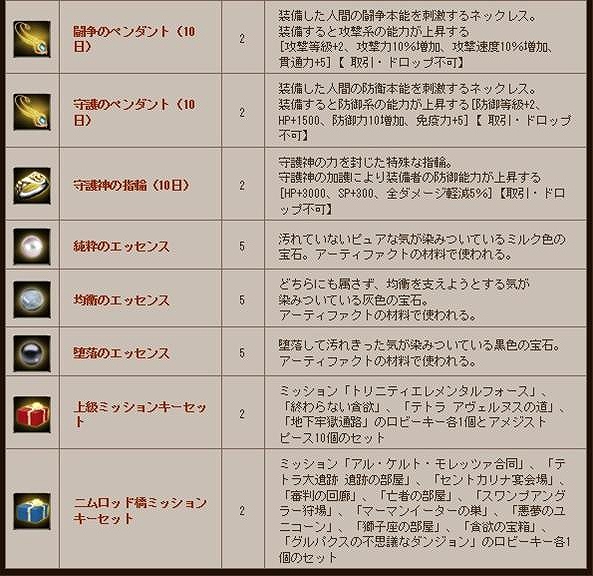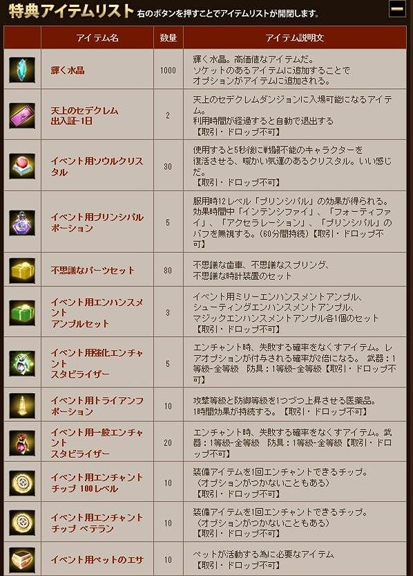 特典アイテムリスト