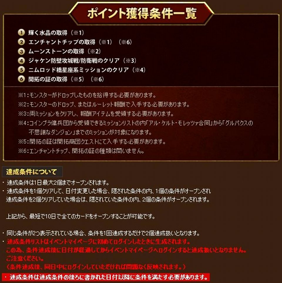 ポイント獲得条件一覧