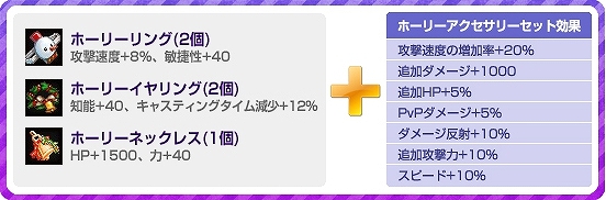 ホーリーアクセサリーは全てを装備すると特別なセット効果を得られます。