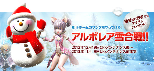 NHN Japanは、「TERA」において、イベント「アルボレア雪合戦!」、TERAガチャへのサンタアバター実装などを本日12月19日より開始する。