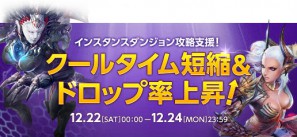 12月22日(土)0時00分から、24日(月)までの3日間は、シャンドラ・マナイアを含む高レベルのインスタンスダンジョンのクールタイムが半減!さらにアイテムドロップ率が2倍になるイベントを開催いたします。この週末からの3日間は思う存分にスキルを駆使し、パーティーメンバーと力を合わせて攻略してください。
