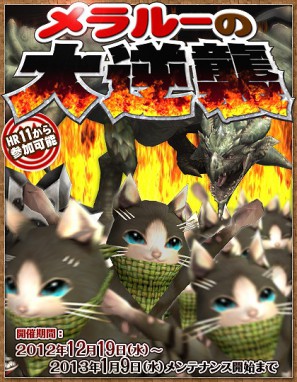 | 2012年12月19日(水曜日)定期メンテナンス終了後 ~2012年12月20日(木曜日)11:59 | 天嵐への導き【雌火竜】 |