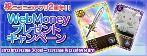 このたび、ニコニコアプリ2周年記念といたしまして、12月20日(木)より、「ニコニコアプリ 2 周年記念 WebMoney プレゼントキャンペーン」が開催されました!