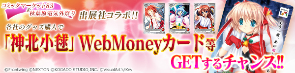 「C83 Keyセット」購入者の中から抽選で200名様に「神北小毬 限定描き下ろしWebMoneyカード」をプレゼント!