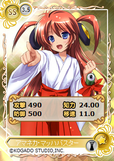 キャラカード「ナノカ・フランカ(SS)」は史上最高の知力25となっており、防御もトップクラスのステータスを持つため、防衛では無類の強さを発揮します。また、「アマネカ・マッハバスター(SS)」は最強クラスの攻撃ステータスと、強力なスキル「聖女の断罪Lv2」をあわせ持つ強力なキャラカードとなっています。