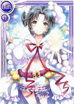 続いては元王女の「シラユキ」。彼女の周りには、その名に違わぬ綺麗な雪が舞っています。今年は彼女の手によって、ロマンチックなホワイトクリスマスになりそうですね。美しいカードイラストとご褒美CGも見逃せませんよ。