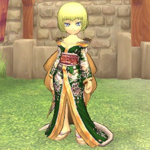 - 女艶和服・緑(1個)/FNO1周年記念☆イラスト&スクリーンショットコンテスト最優秀賞作品をイメージして作成された衣装。粋なデザインが多くの人々を魅了します。(キャラクター能力引き上げ効果はありません)
