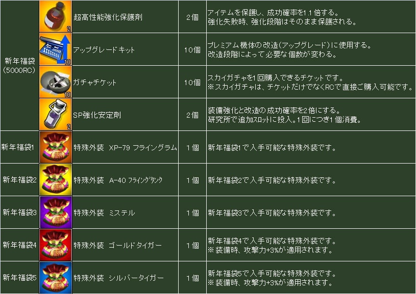 新年に向けて、便利なアイテムと特殊外装が100%当選するスカイガチャ新年福袋を5,000RCで期間限定販売!