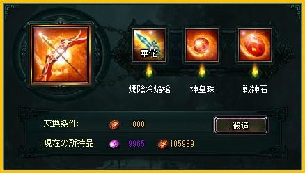 1.装備:等級130 武器の装備鋳造に使用するアイテム「神皇珠」「戦神石」
