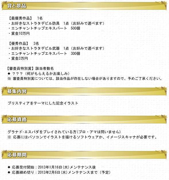 応募締め切り:2013年2月6日(水) メンテナンスまで(予定)