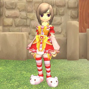 SPキャンディドレス・赤(1個)/いたるところにキャンディが散りばめられた衣装。装備したキャラクターの能力をさらに引き上げてくれる。