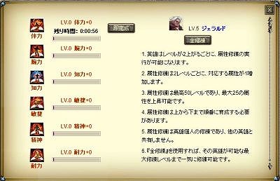 英雄のレベルが2上がるごとに、属性修練の実行が可能になります。属性修練は英雄画面から行えます。属性修練は完了まで一定時間を要し、修練が完了すると英雄の属性値が上昇します。