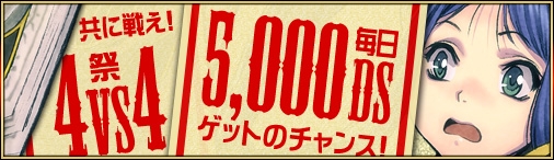 毎日参加すると1日5,000DS×7日で最大35,000DS!ゲームマスターのキャラクターと敵or味方として戦うと5,000水晶!
