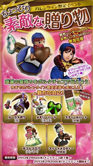 女性ハンターの皆様、モテキ到来です! 男性ハンターにチョコをバラまきましょう♪当イベントの詳細につきましては、MHF公式メンバーサイト内の告知ページをご確認ください。