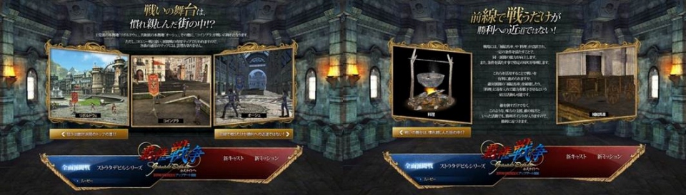 各市街地には、“補給馬車”や“料理”が設置され、味方派閥、キャラクターの能力を向上させることができる一方、敵対派閥の“補給馬車”の破壊、“料理”に毒を盛るなど、妨害活動も可能だ。