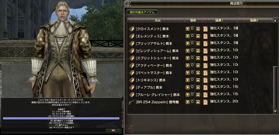 強化スタンス教本の商店追加 マスターガーディアンスにて販売 11種類追加