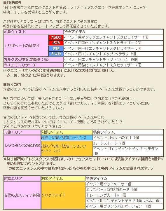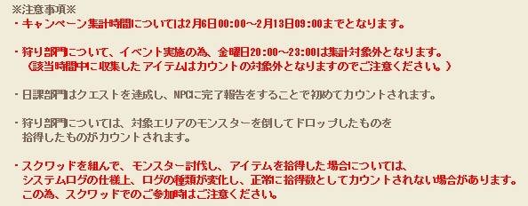2013年2月6日(水)メンテナンス終了後から、2013年2月13日(水)定期メンテナンス開始までの間に条件を達成することで、特典アイテムを受け取ることができます。
