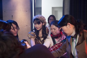 今回、自身が声優を務める「ハロリ」のキャラクターコスチューム姿で撮影に臨んだ道重さん。撮影の合間、スタッフとの会話の中でも“ハロリのコスプレ姿”が話題になりました。