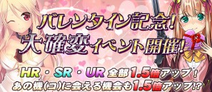 バレンタインを記念して、大確変イベントを開催します!今だけ!HR、SR、UR全部1.5倍アップ!もちろん、あの機(コ)に会える機会も1.5倍アップ!この機会を逃さず、あの機(コ)に会おう♪…これであなたもリア充です!!